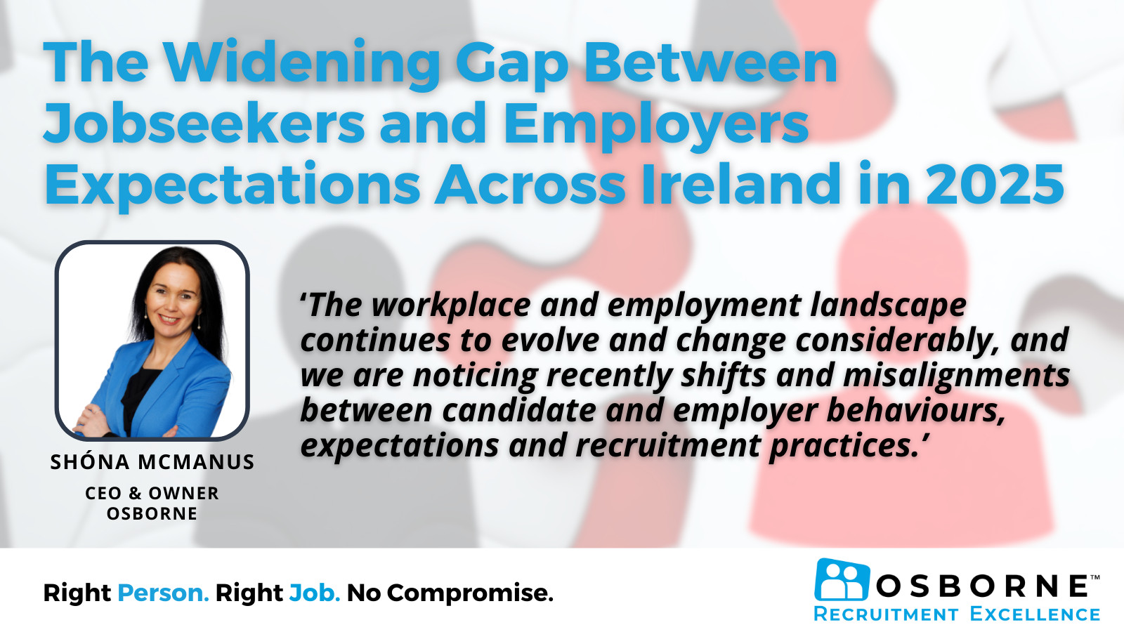 We have gathered insights into the latest hiring trends in Ireland, drawing from direct engagement with both jobseekers and employers across multiple sectors. According to our CEO Shona McManus ‘The workplace and employment landscape continues to evolve and change considerably, and we are noticing recently shifts and misalignments between candidate and employer behaviours, expectations and recruitment practices.’